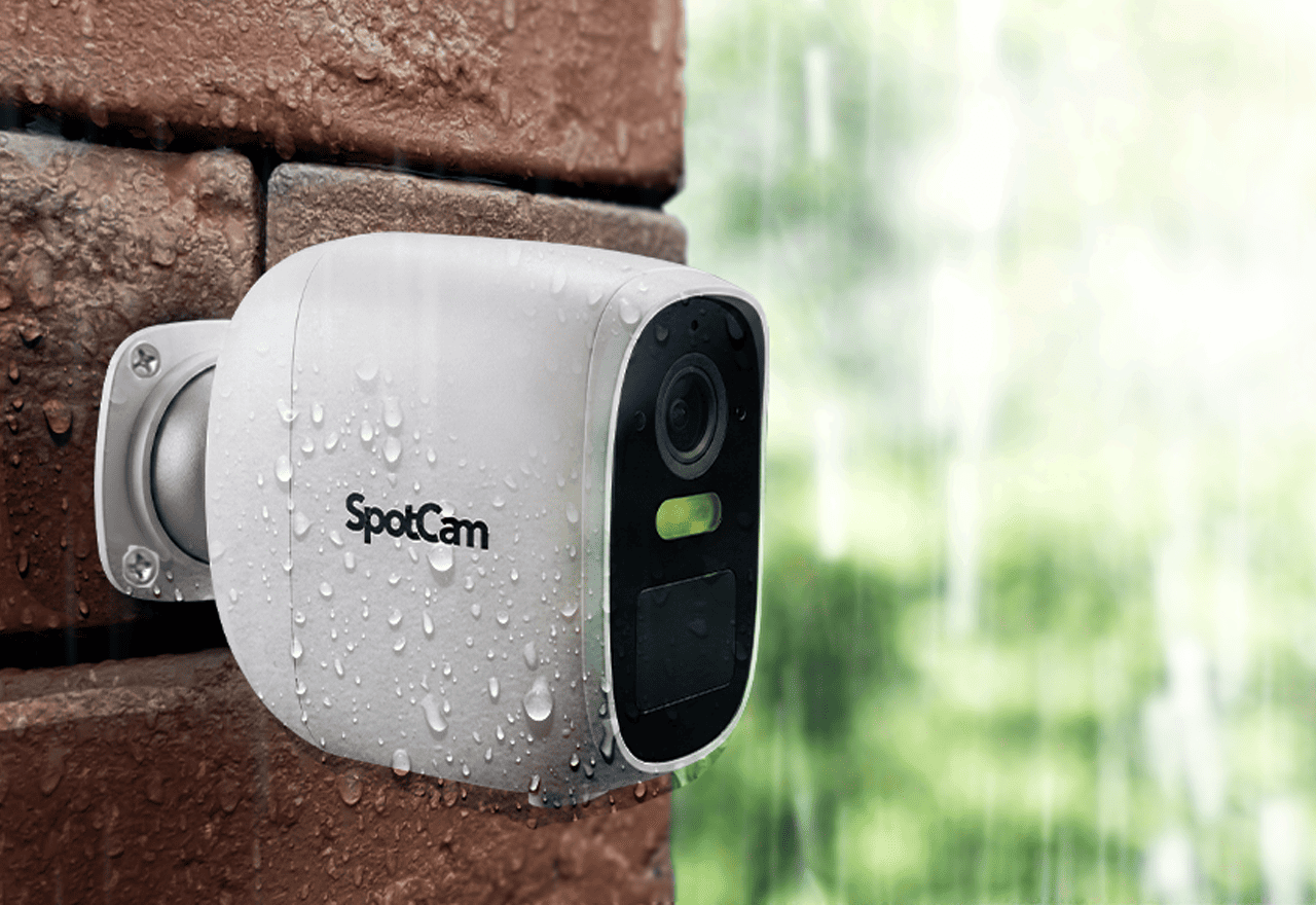 Comprend toutes les fonctionnalités de SpotCam FHD plus l'étanchéité à l'eau et à la poussière IP65 pour